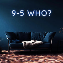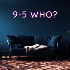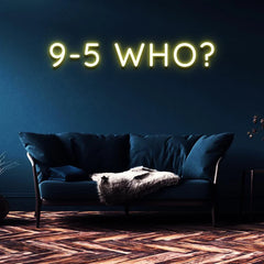 Not a 9 - 5 person? Challenge the daily grind with this playful "9-5 WHO?" neon sign, perfect for unconventional workspaces or home offices.