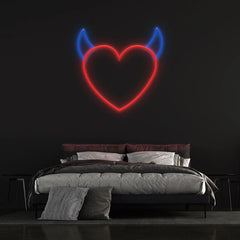 Wild and beautiful, this ‘devil heart’ neon sign is perfect to amp up your bedroom décor. Install it on your wall or against the window without any hassle. The red and blue neon lights blend well with each other. Pick the right size depending on the size of your room.