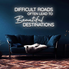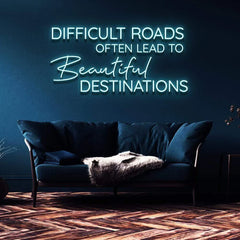 "DIFFICULT ROADS LEAD TO BEAUTIFUL DESTINATIONS" NEON SIGN