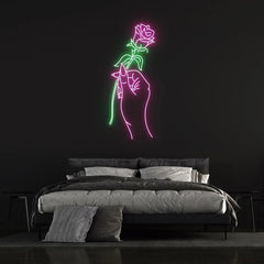 "Hand of Love" neon wall sign is perfect for bedrooms and living spaces. Available in different sizes to cater to your preference.