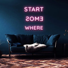 Add an electrifying neon vibe to transform your space and enhance the mood. This soul-inspiring "Start Somewhere" neon sign is affordable and built to last for years. Use as a night light or wall art and stay motivated to accomplish your goals.
