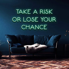 "TAKE A RISK OR LOSE YOUR CHANCE" NEON SIGN